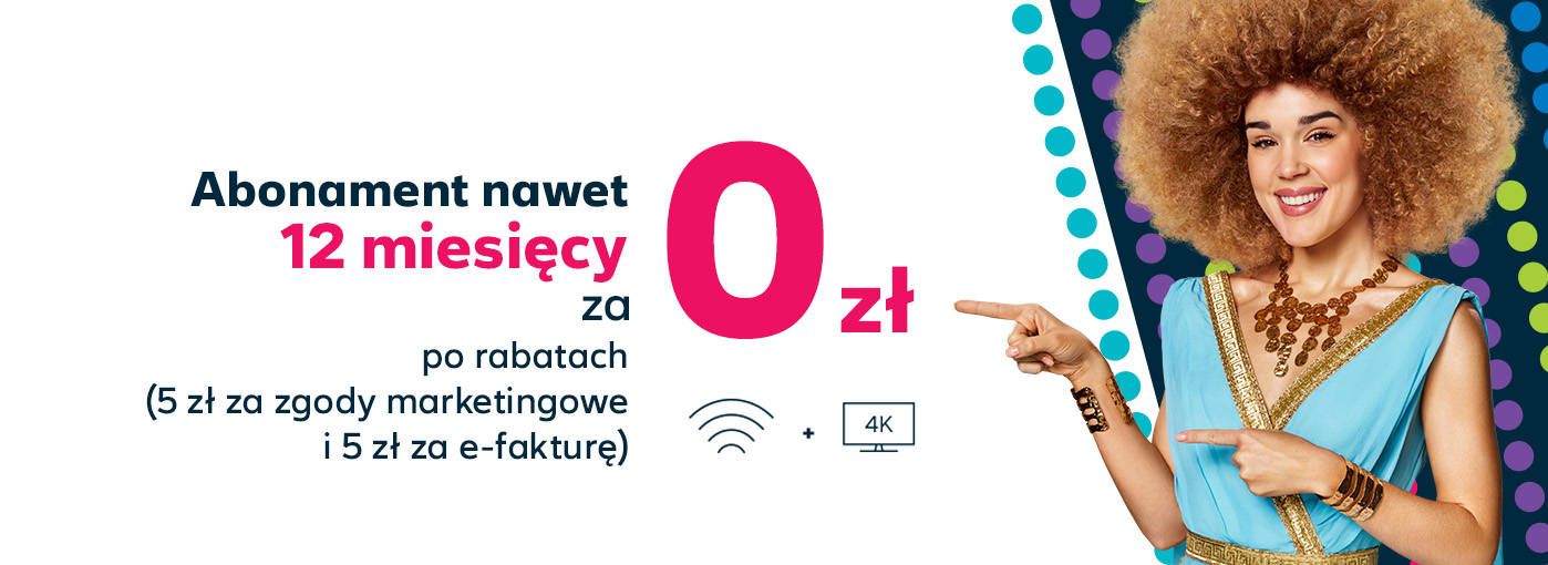 Średnia cena z 24 miesięcy: 70 zł/mies.- Abonament 12 miesięcy za 0 zł po rabatach